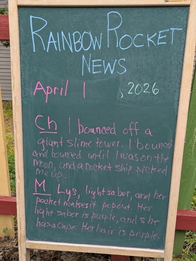 I heard someone say, “We don’t like them because they boom us.” We care for ourselves and each other and that means keeping ourselves and others safe. And it’s okay not to like someone, and at Rainbow School, we still love and care for everyone whether we like them or not. I love each of you whether you boom or not.