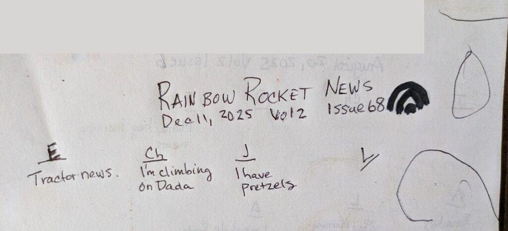 There was a bear in the yard. There were three of you in the Dark House. The bear growled at the curtained door. Bear claws raked the air. The three screamed and ran out of the Dark House. The bear chased them up Rainbow Mountain. The three disappeared into the Dark House again. Another bear came.