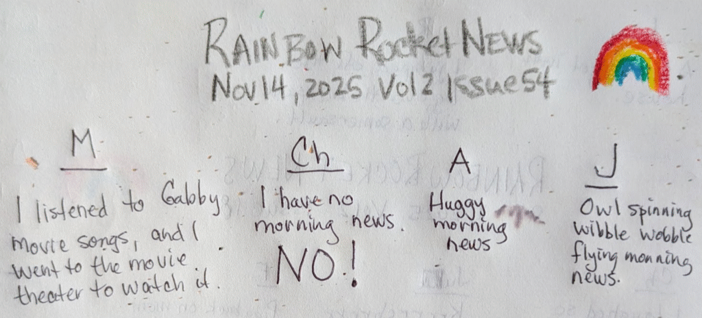 Note: No Rainbow News today. We practiced how to be safe if there were a fire.