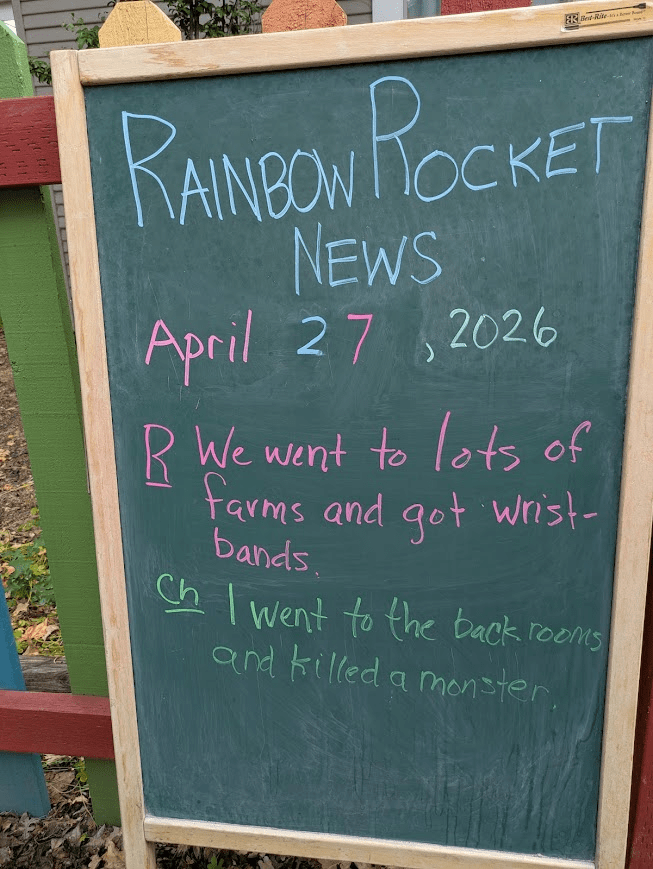 “Help! Help! They need our help,” you cried to the new grownup. You aren’t the newest Mulberry student anymore. A newer family joined our class today. Yay!